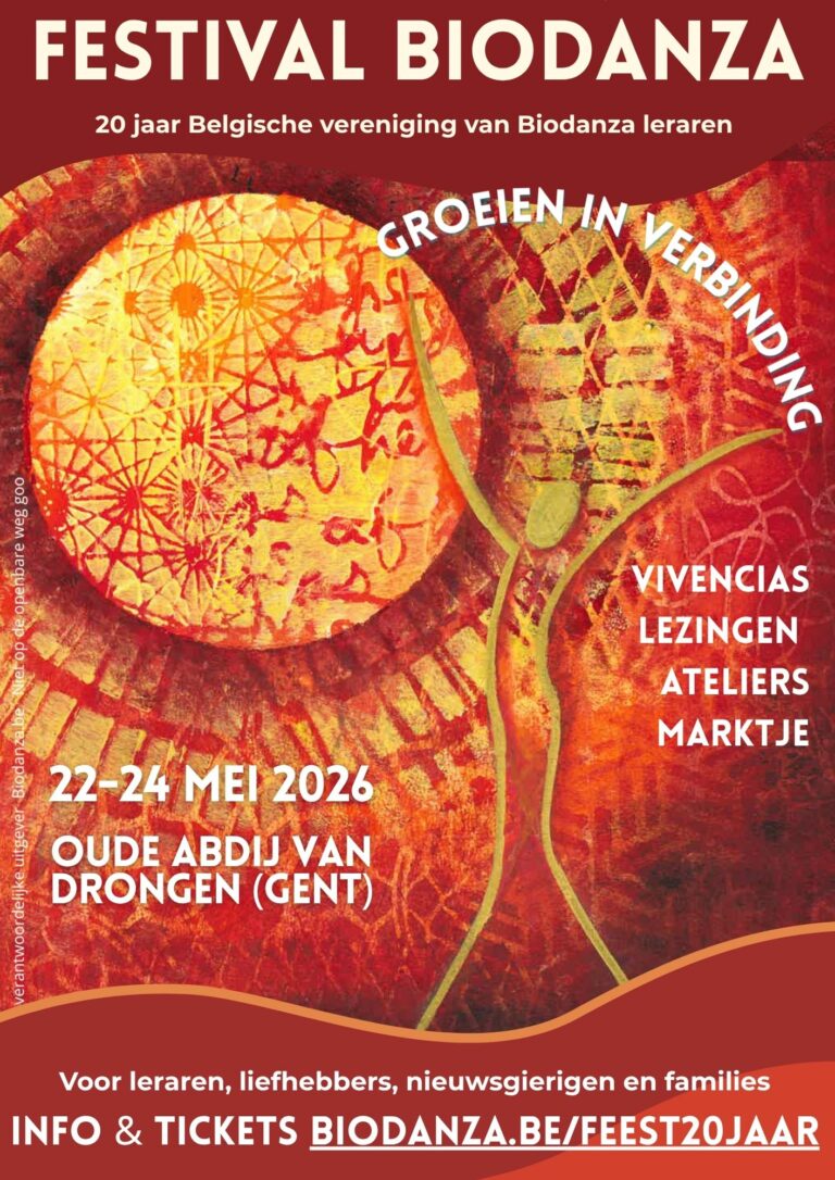 Kom het zelf ervaren tijdens het Biodanzafestival ‘Groeien in verbinding’, een feestelijk weekend vol verbinding, dans en levensvreugde, tijdens het Pinksterweekend van vrijdag 22 tot en met zondag 24 mei 2026 in de Oude Abdij in Drongen, bij Gent.
